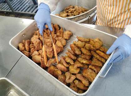 むね肉にはあおのりをまぶして、見分けがつくようにして調理しました。