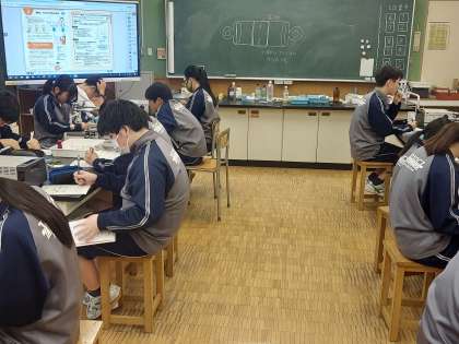 3年生の理科では、「酸性、アルカリ性の正体」という内容で実験及び考察を行っていました。