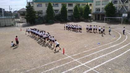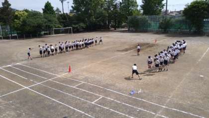 3年生は体育祭の学年練習でした。グラウンドでリレーの練習の後、クラスごとに大縄跳びの練習をしていました。