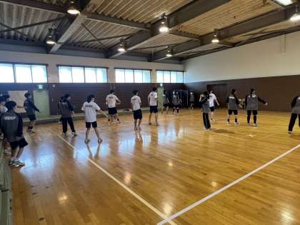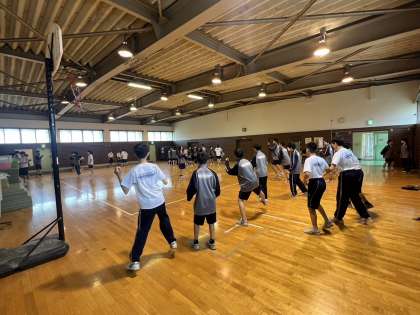 今日は雨のため校庭が使用できません。多くの2年生が小体育館で「表現」の練習に取り組んでいました。