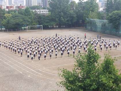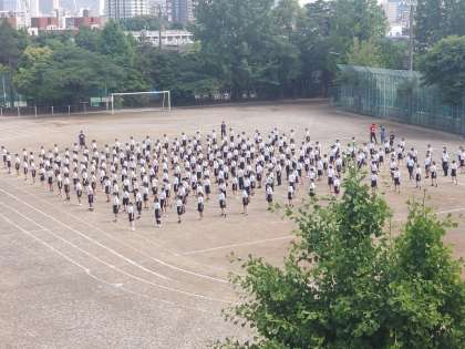 5時間目は各学年とも体育祭の練習でした。2年生と3年生は合同で練習しました。「RADIO運動」を上から撮影してみました。とても綺麗な動きでした。