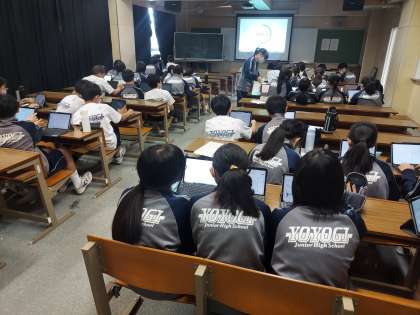金曜日の1時間目と2時間目は、代々木中学校探究学習の時間です。写真はテーマが決まらずモヤモヤしているグループです。それぞれが一生懸命に考えていました。