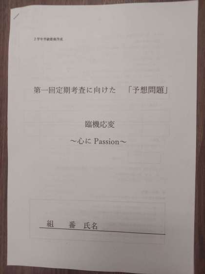 2年生の学活では、プログラム検定の準備とふれあいアンケートの後は、学級委員の皆さんが作成した定期考査に向けた予想問題に取り組みました。