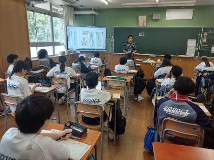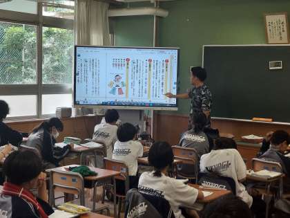 1年生の国語の授業では、「自立語と付属語、活用、品詞」の内容でした。例をあげて対話しながら授業がすすめられていました。