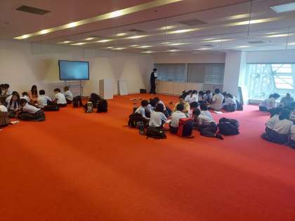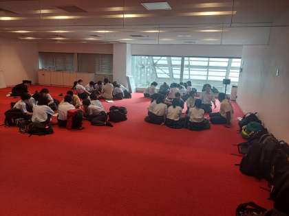 2つのグループにわかれて学習の振り返りをしています。この後、バスに乗車して帰路につきます。