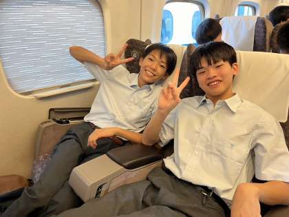 定刻どおり、8時24分に新幹線が出発しました。車内は笑顔で溢れています。