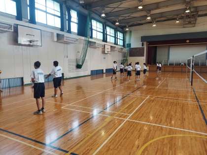 2年生の保健体育のもう一方のクラスは、大体育館でバレーボールに取り組んでいました。