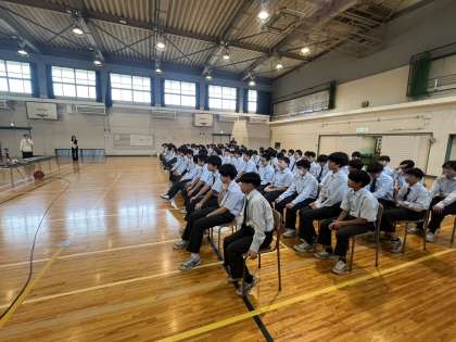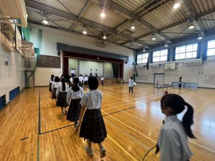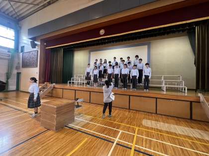 本日は、2時間目は1年生、2時間目は2年生、3時間目は3年生がもみの木祭のリハーサルです。写真は、1年生のもみの木祭リハーサルの様子です。入退場の練習に時間がかかっていますが、本番までに完璧にできると良いですね。