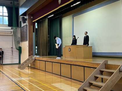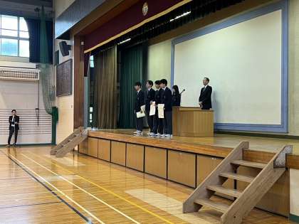 卓球、陸上、ボルダリングの表彰を行いました。様々な競技での活躍、素晴らしいです。
