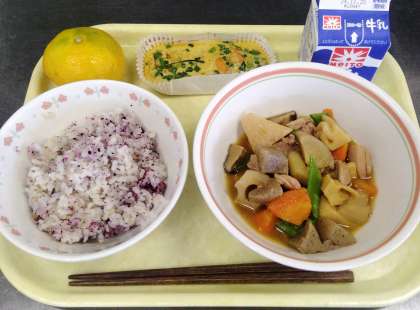 テスト勉強への集中力がアップするようによく噛める根菜を取り入れた献立です。