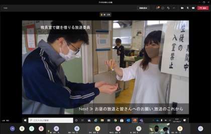 今週はオンライン生徒朝礼からスタートしました。本日の発表は放送委員会です。日頃の活動報告から全校生徒へのお願いまで、さすが放送委員というしっかりしたアナウンスでした。また、選挙管理委員会からの連絡、表彰を行いました。 校長