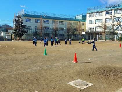 3年生の保健体育の授業では、アルティメットを行っていました。アルティメットとは、敵、味方に分かれて一枚のディスクをパスしながら運び、エンドゾーンを目指す競技フライングディスクの団体競技です。冬休み明けに元気に競技に励む3年生でした。