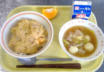 じゃがいもと片栗粉を混ぜた手作りお団子入りの汁を作りました。