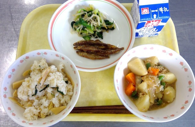 たけのこの厚みのある部分は、厚みを半分に切ってから短冊切りにして、食べやすさに配慮したカットをしています。