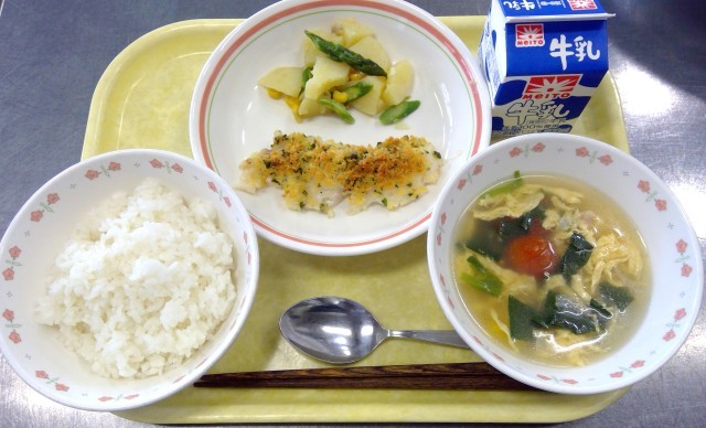 旬のアスパラガスとミニトマトを取り入れた献立です。