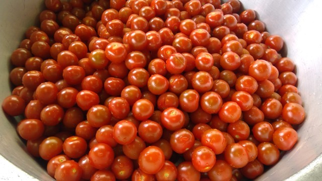 ツヤツヤのミニトマトです。調理員さんが1粒ずつヘタを取り除いてくれました。