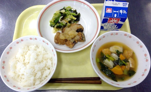 カラっと揚げたカツオに、さっぱりとした大根おろしだれをかけました。