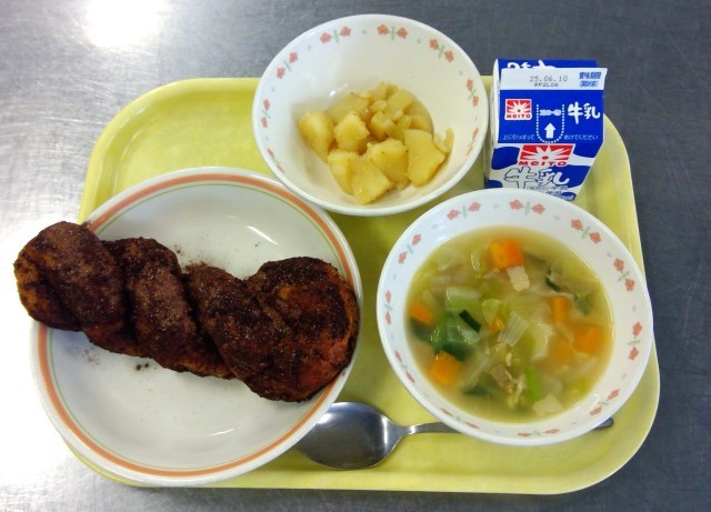 今日はココアと砂糖をまぶしたココア揚げパンです。