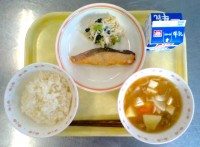 牛乳ご飯ぶりカツからし和えさつま汁