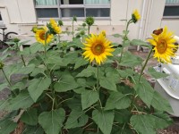 正門の脇の向日葵が開花しました。学校説明会にあわせて開花するように仕込んでいたの...