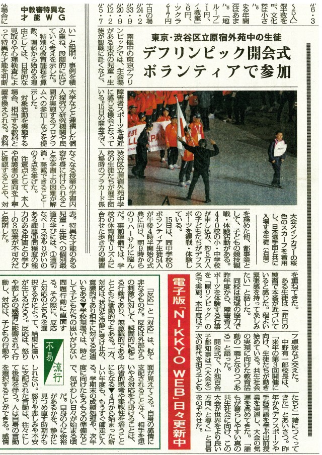 ・11/15(土)に東京体育館にて行われた「東京2025デフリンピック」開会式のプラカード係を本校生徒が担当しました。(出典:2025年11月17日付 日本教育新聞電子版)