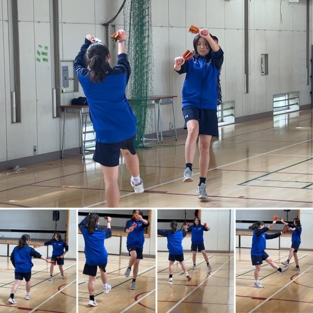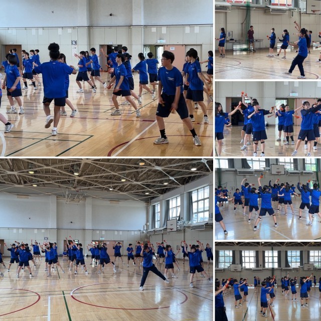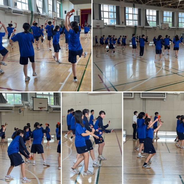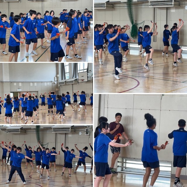 本日の昼休みは体育館にて有志によるよさこい練習が行われました。全校生徒が対象ということで3学年合わせて90名ほど(加納先生と、たまたま学校にいらっしゃったPTA会長も!)が集まってくれました。