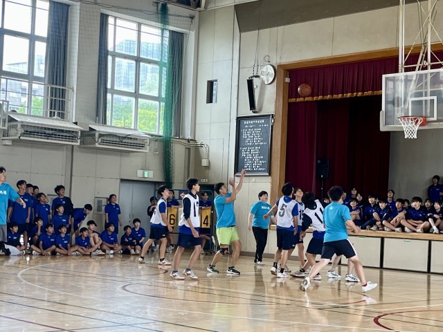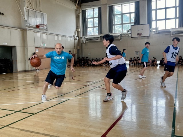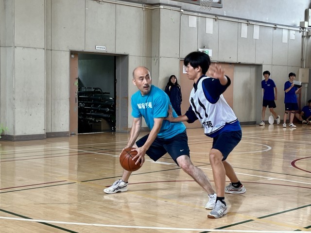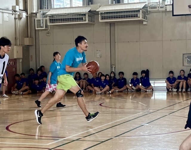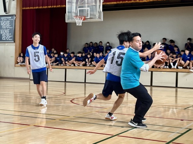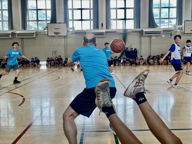 先生方がシュートを放つたびに生徒たちは大盛り上がり!