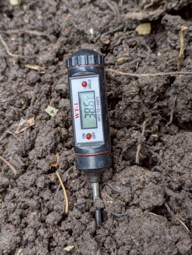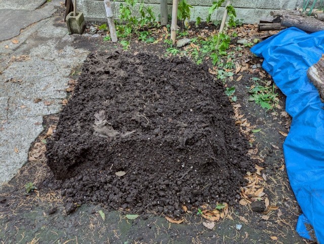 久しぶりに耕運機で底の底から切り返し。連日の雨で水分が多かったですが、臭いはありません。
