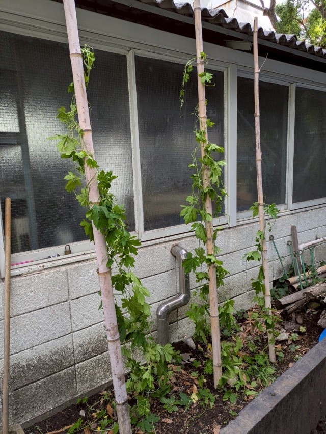 暑い!!堆肥の温度がもう体感気温と同じじゃないかというほど。ゴーヤがいい感じです。