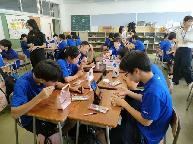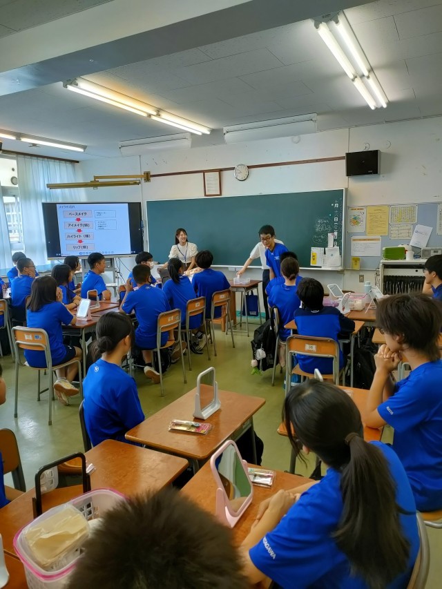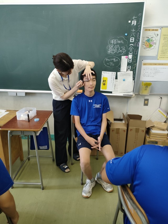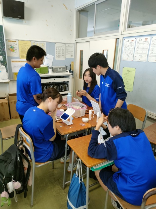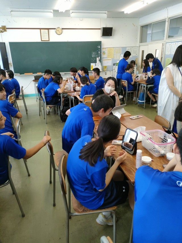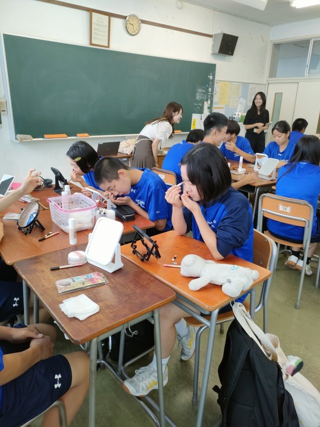 今日も 引き続き 伊勢半さん(https://www.isehan.co.jp/)にお手伝いいただいて、よさこいメイクの授業です!!