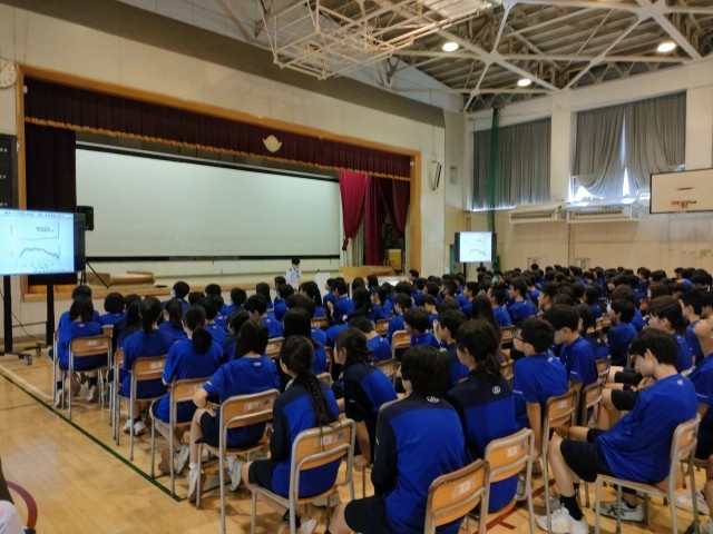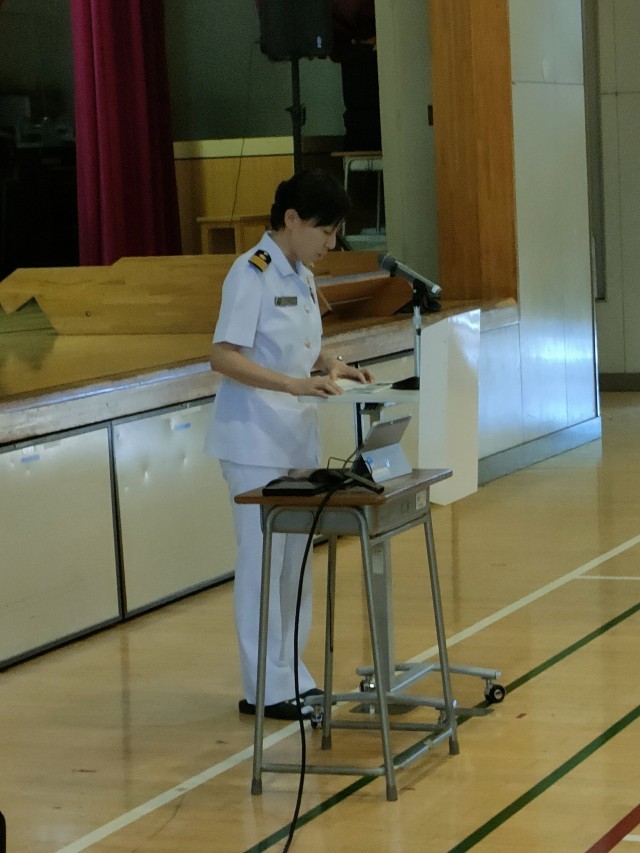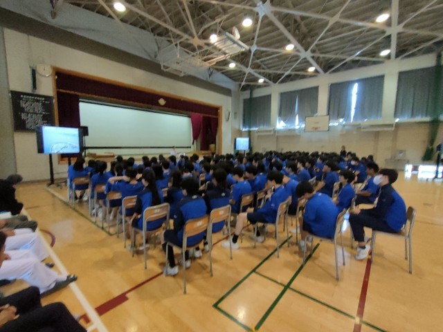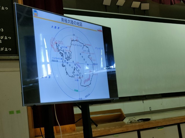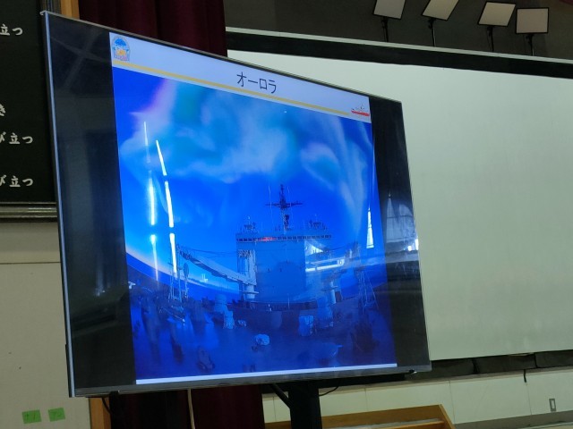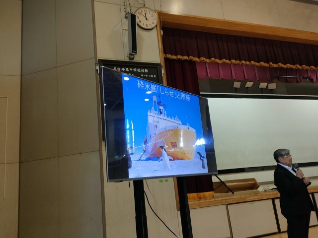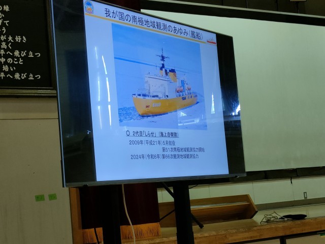 4校時目 今期最後の特別授業 砕氷艦 しらせ の艦長さんによる 講演です。