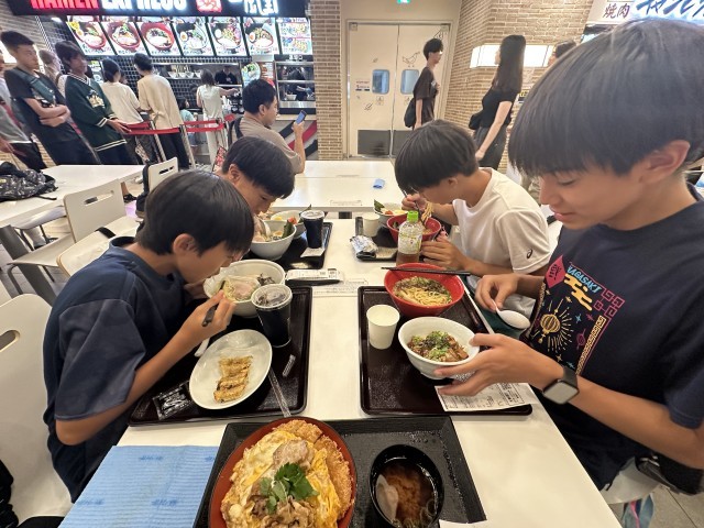 遅めのお昼ご飯を食べました。中学生の食欲は見ていて気持ちいいですね。「こりゃ足りないな。たこ焼き食べよう」と言って、先を立ち上がったまま帰ってきません。相当並んでいる模様…。食べかけの明太子ご飯が冷めちゃうよ…。
