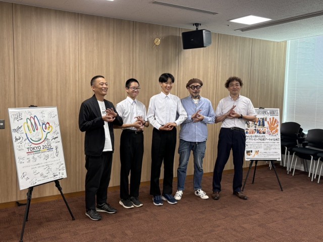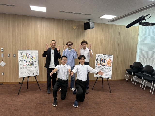 原リンピックでデフリンピックのアートのワークショップを開きましたが それについての取材があり 本校の生徒会代表2名の生徒も参加をしてくれました。