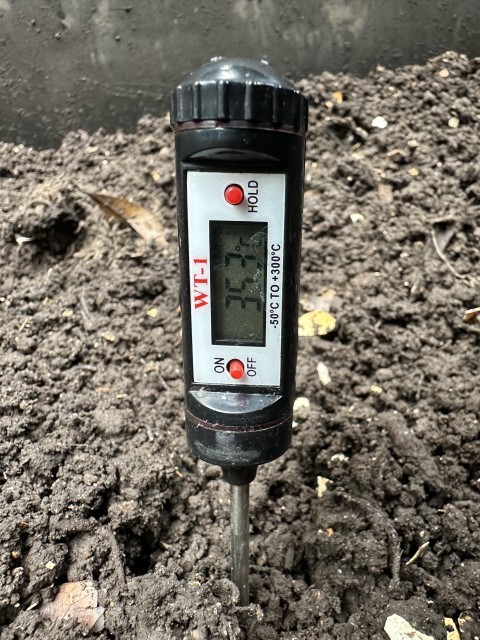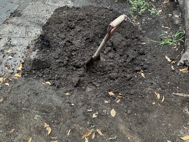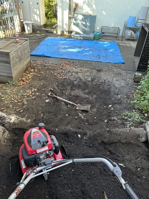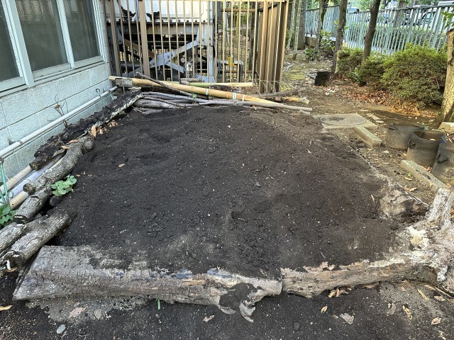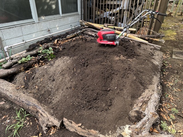 本日はほぼ出来上がった堆肥を昨年度使用して痩せた土に混ぜ込みました。
