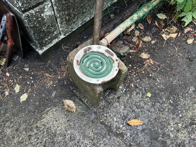 耕運機をフル活用。2年生の保護者さまからいただいた蚊取り線香を2箇所に準備して、集中して作業できました。いい感じに攪拌できたと思います。