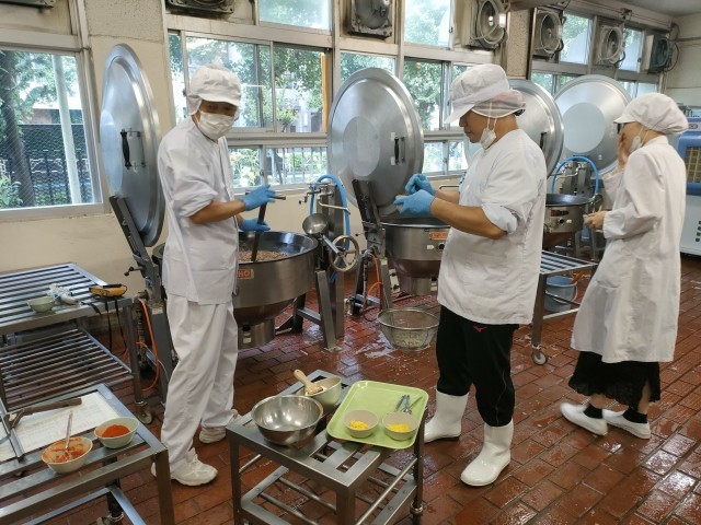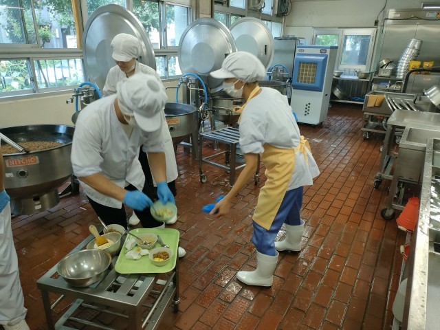 うまみはどうか などなど そしてできあがったのが今日のメニュー 給食室の渾身のメニューです!! ボナペティ!!