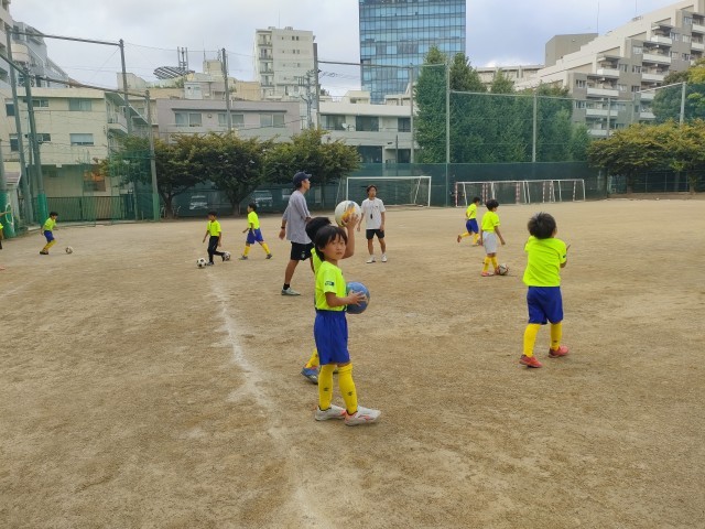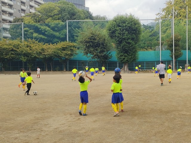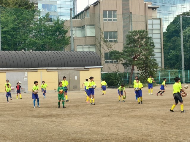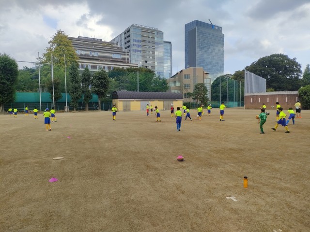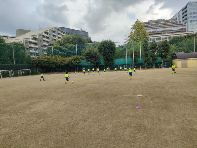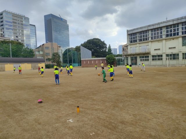 校庭を見ると 少し小さな子供たちがサッカーの練習をしていました。