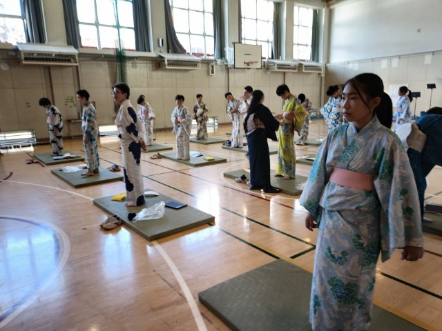 1年生は、着付け体験自体が初めてです!! 他学年に比べると時間がかかるのかなあ・・・と思いきや