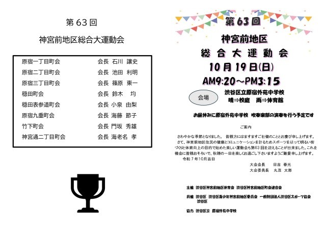 来たる10月18日(日)に神宮前地区総合大運動会が行われます。
