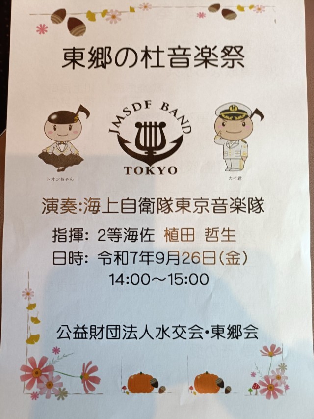 そして、今回その水交会からお誘いがあり、 東郷の杜音楽祭に招待され、見てまいりました。