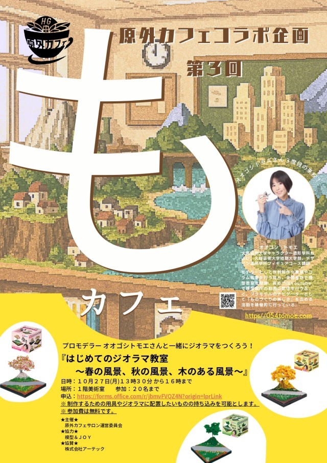 ①プロモデラーのオオゴシトモエさんを招きジオラマづくり体験を実施。