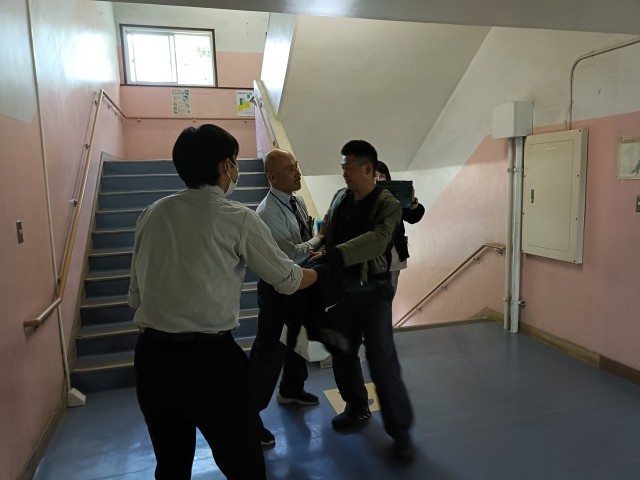 昨日午後は、避難訓練を実施しました。 原宿警察署の皆さんのご協力のもと不審者対応訓練を実施しました
