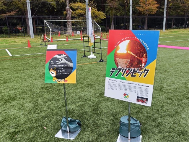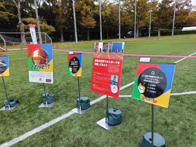 そのほかにも 原リンピックで取り上げた デフリンピックを取り上げているブースなどもあり、