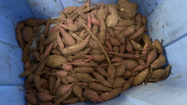 干し芋として加工できるサイズのものを20キロ、壮関さんの本社工場に出荷しました。残った芋は後日持ち帰り自由ということにして玄関に置く予定です。