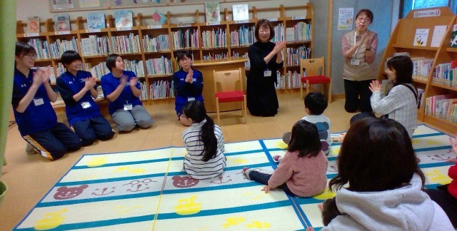 中央図書館で行われている『読み聞かせおはなし会』。「読み聞かせに参加してみませんか?」とお声がけいただき、今月と来月、本校の生徒も参加しています。今日は1年生1名、3年生3名が参加してくれました。小さな人たち、お話しに引き込まれている様子でした。来週も水曜日に実施予定です。