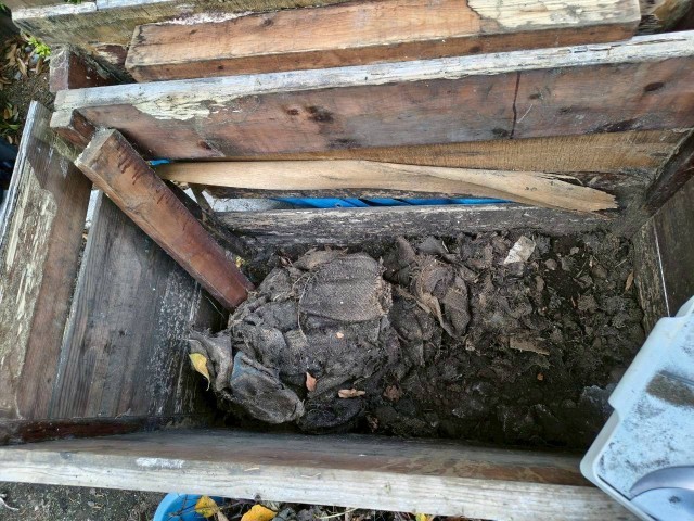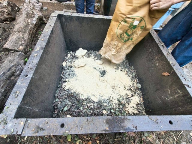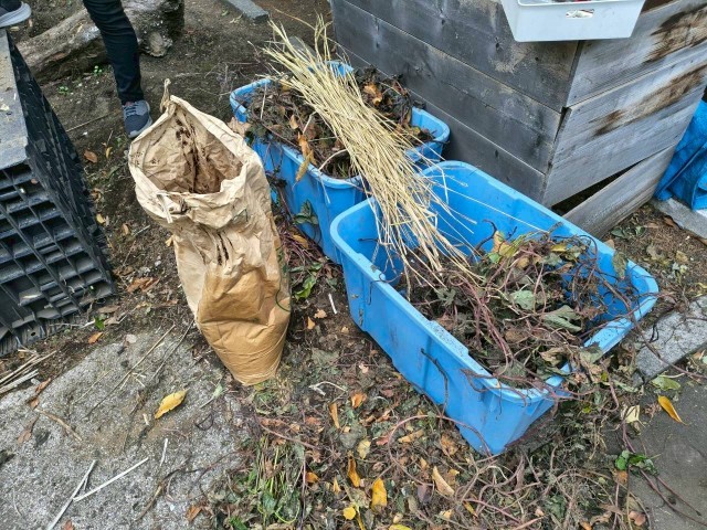 紅はるか収穫時にでた蔓、向日葵の茎、麻袋、米糠を混ぜ込みながら堆肥の種を作りました。まだ足りないものがあるので、順次足していきます。