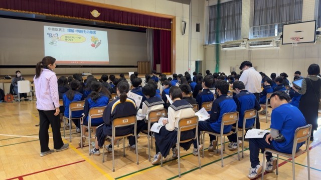 本日5校時に1年生対象で行われた認知症サポーター中学生養成講座の様子です。