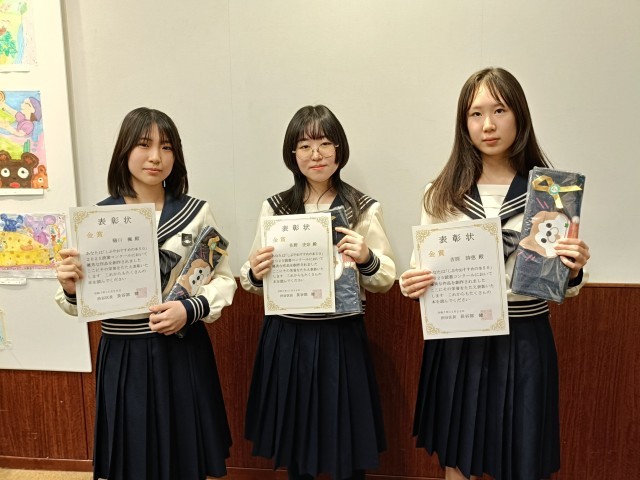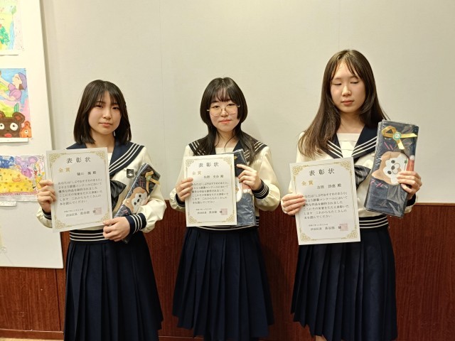 今回は、金賞受賞者の3名の生徒が本校からも選ばれ 賞状及び記念品を一人一人が受け取りました。