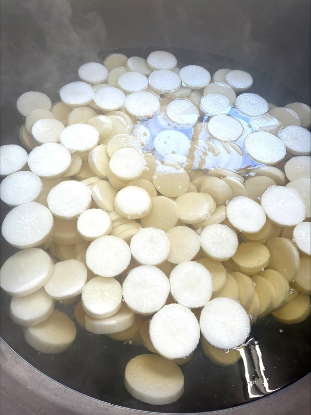 ふろふき大根には、加賀野菜で知られている「源助大根(げんすけだいこん)」を使用しました。