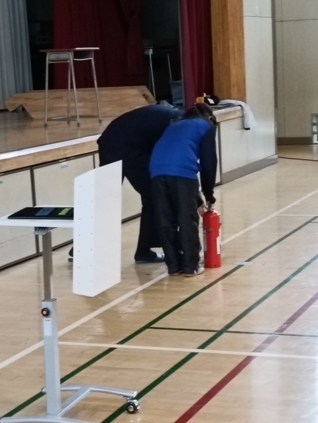 あいにくの雨天で代表生徒は消火器訓練に参加してくれました!!